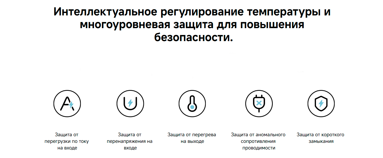 Особенности от короткого замыкания, от перегрева, от перегрузки, стандарты быстрой зарядки Power Delivery, Programmable Power Supply, Quick Charge