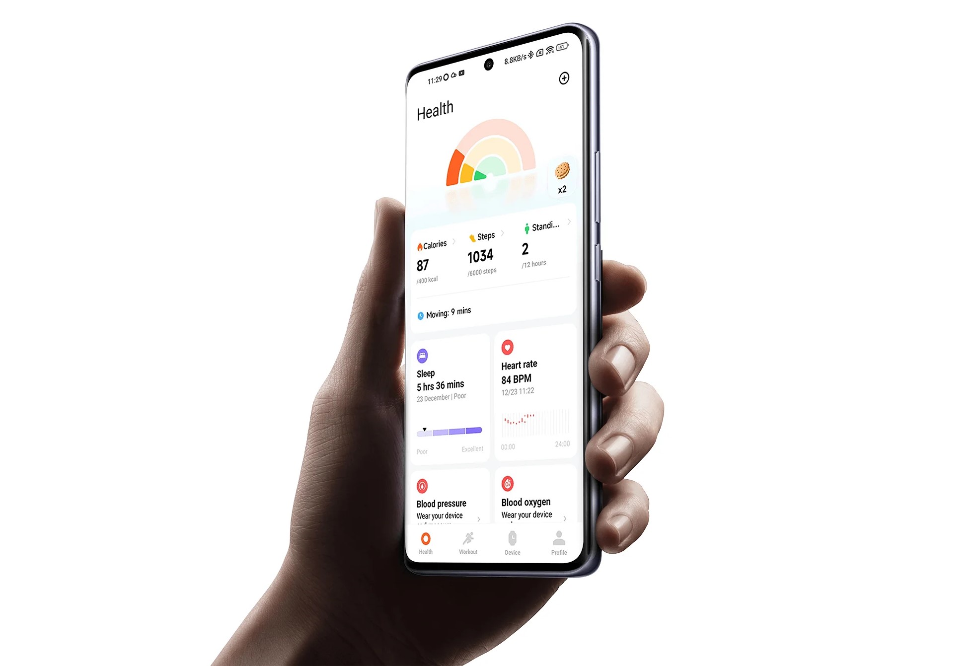 | Измерения | продолжительность и качество сна, количество шагов, потраченные калории, пройденное расстояние, пульс, уровень стресса и восстановление, уровень кислорода в крови |